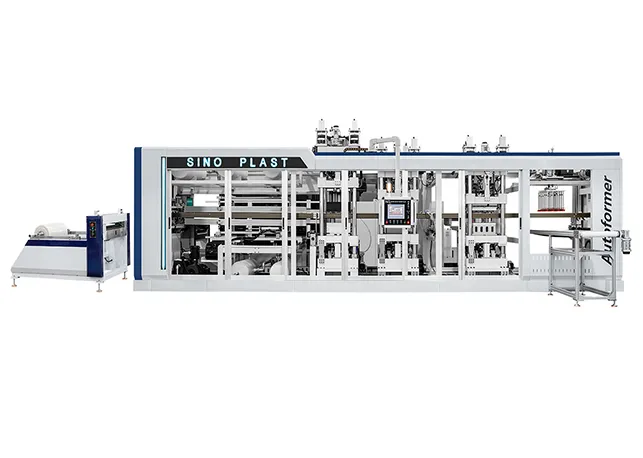 Las máquinas termoformadoras de alta velocidad se utilizan comúnmente para fabricar productos plásticos desechables como bandejas para huevos, cajas para fruta y tapas para vasos de bebidas frías. Estas máquinas cuentan con tres estaciones de trabajo y un área de moldeo máxima de 780 x 540 mm. En condiciones normales de producción, el equipo puede alcanzar 45 ciclos por minuto.