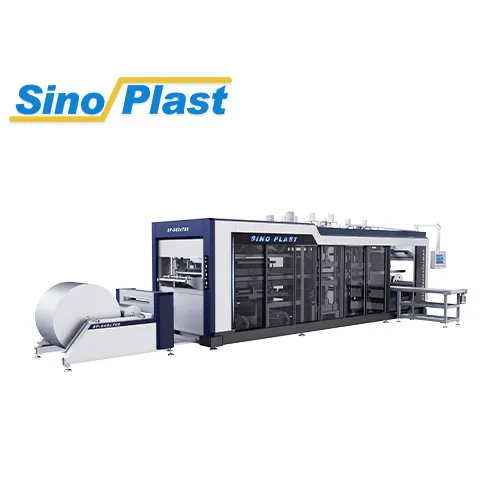 La termoformadora SPB-780E es el modelo más grande de Sinoplast, con una configuración de formado de 780 x 650 mm y equipada con tres estaciones de trabajo. La apertura y el cierre de cada estación se accionan mediante servomotores, lo que mejora la precisión y el control durante el proceso de producción. Para reducir las vibraciones, comunes en las máquinas de moldeo de mayor tamaño, la SPB-780E incorpora una robusta estructura de cuatro columnas para soportar cada estación. Este refuerzo estructural no solo estabiliza el proceso de formado, sino que también mejora la precisión del producto final.
